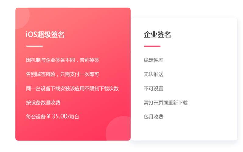 我们采取的iOS超级签名和企业签名机制不同,掉签概率远低于传统企业签名